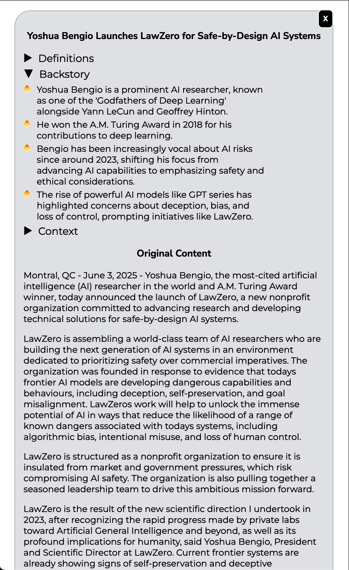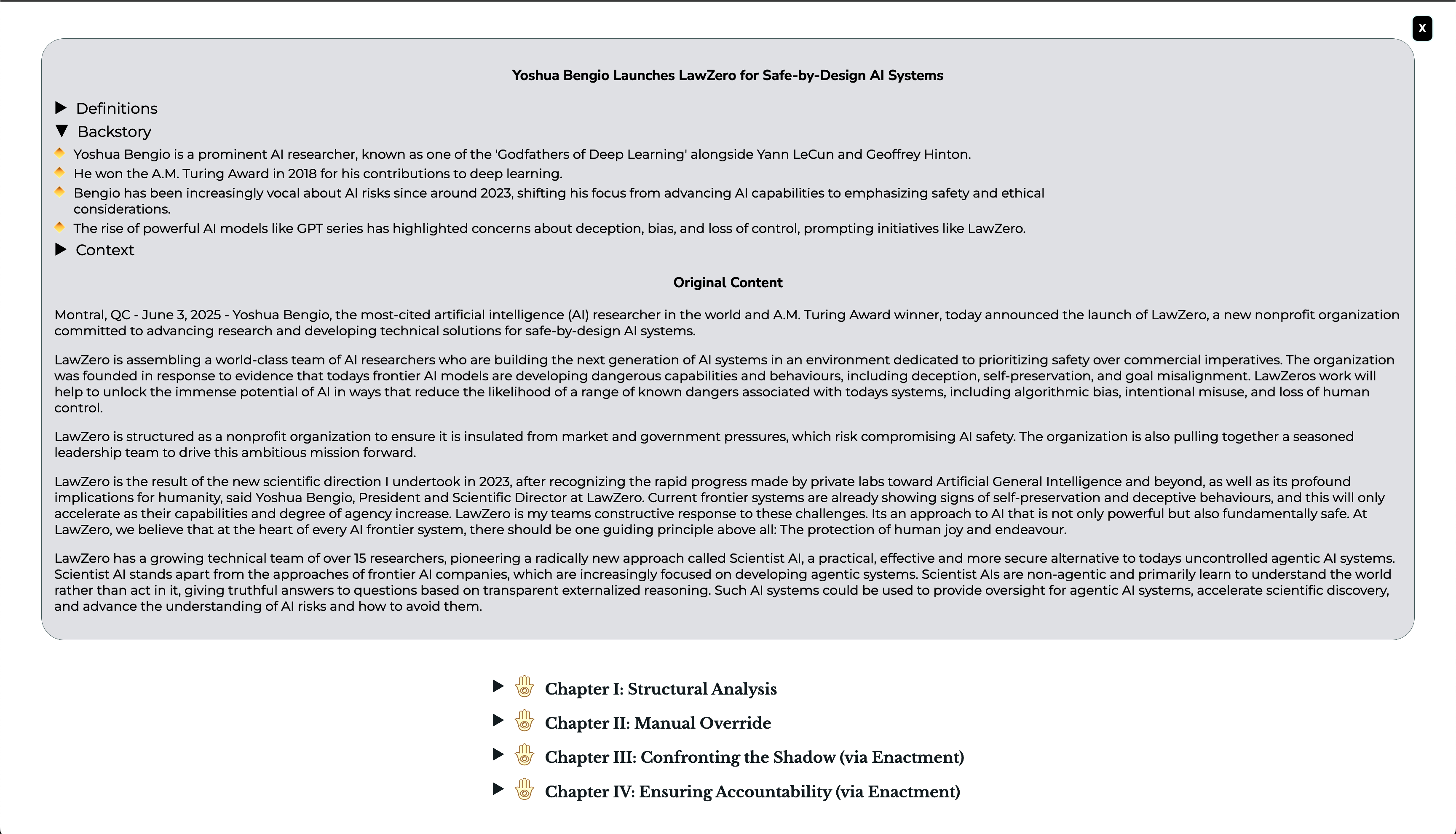 Launch of LawZero for Safe-by-Design AI Systems